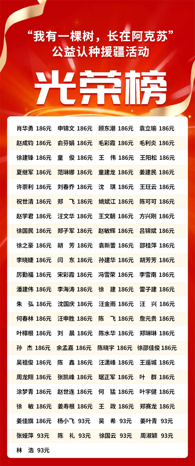 當愛心認種名單交到集團工委副主席毛彩霞手中時,她高興的說道:沒想到大家這么給力,熱心公益,自愿慷慨解囊,給我們工委制造了一份大驚喜!我將把這份沉甸甸的浙阿深情傳遞給主辦方浙江FM93交通之聲,相信這片愛心公益林今年將給阿克蘇地區(qū)的群眾帶去一份生活的甜蜜。